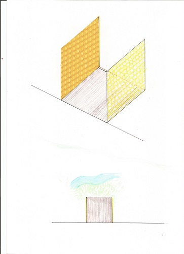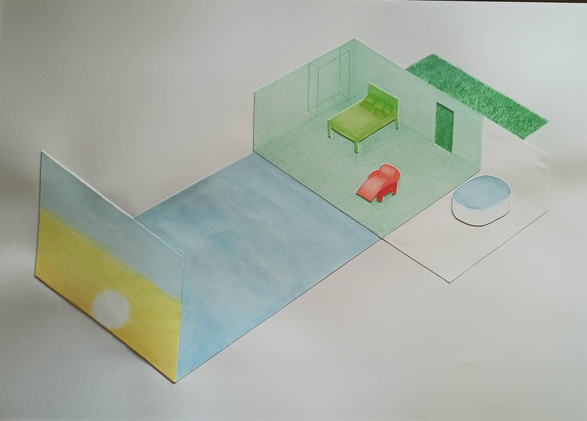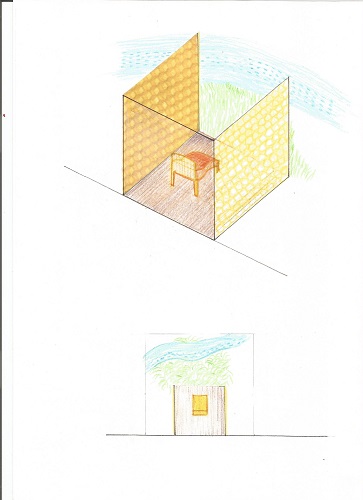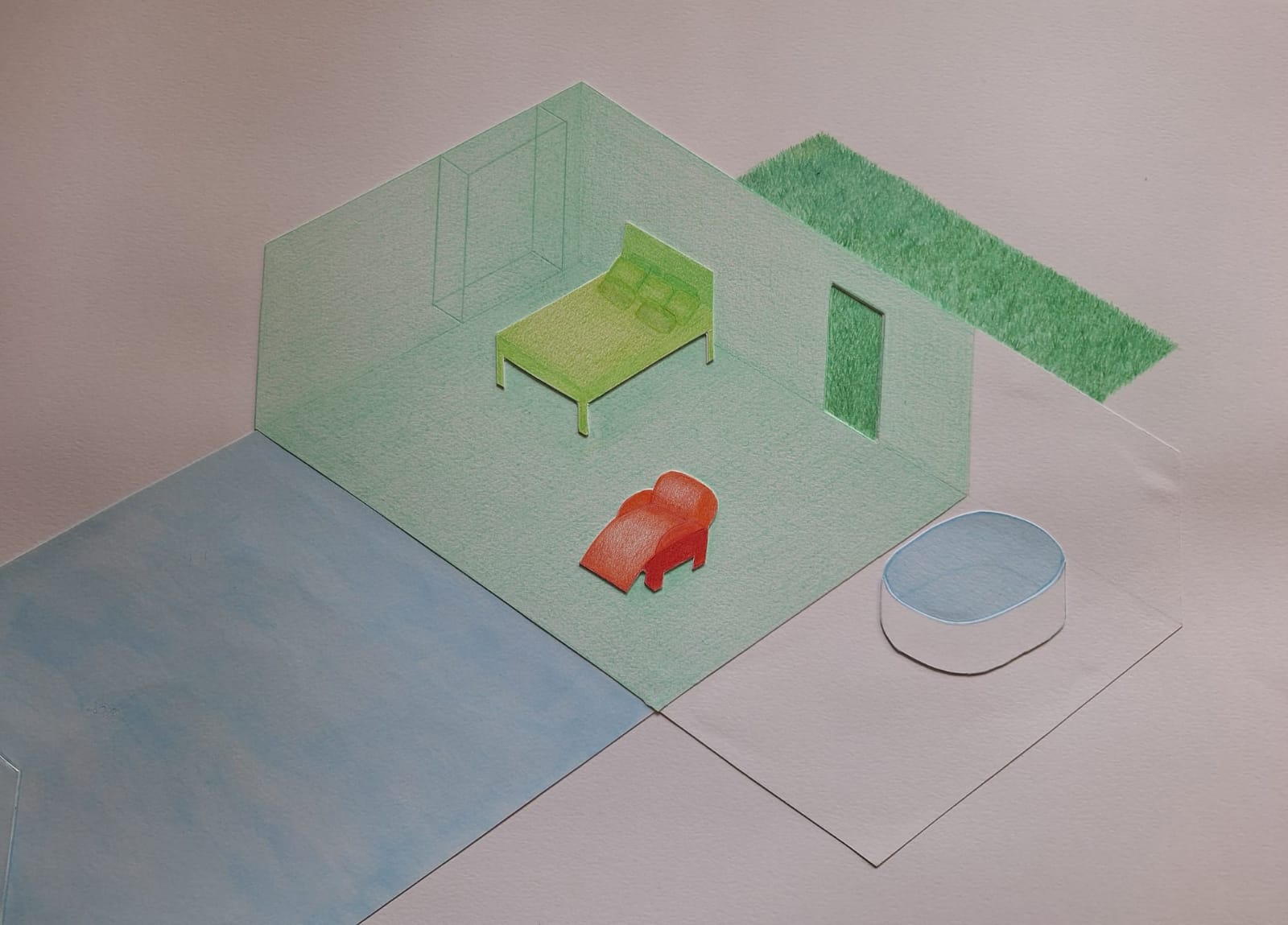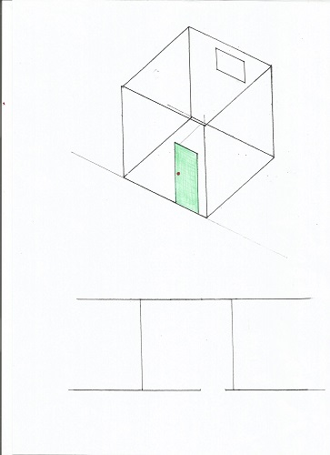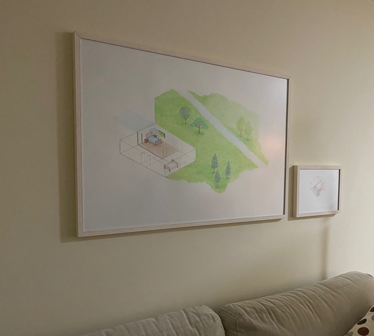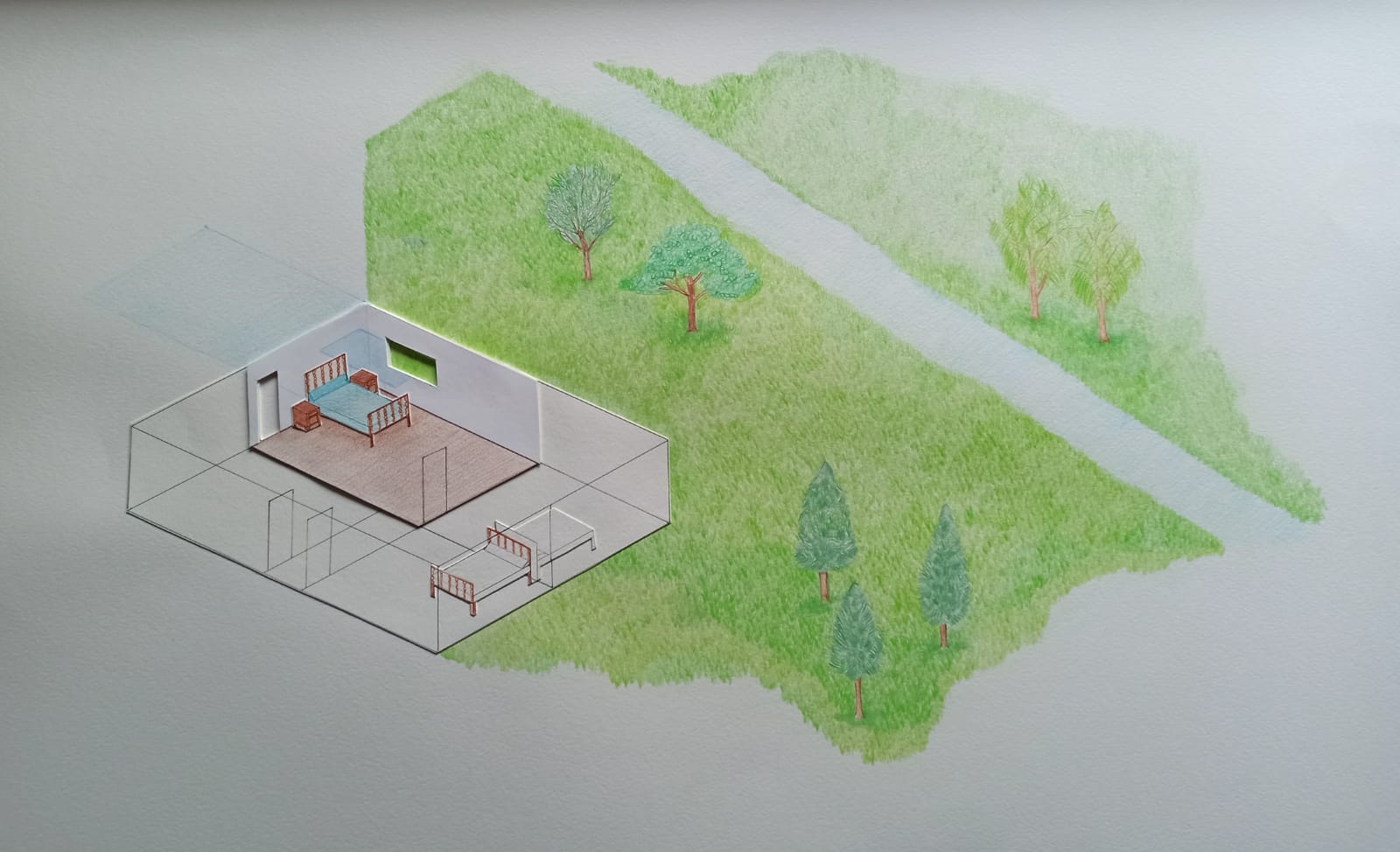 Ao ser unha recreación do dormitorio actual, suxiro que este debuxo se coloque nel, na parede da dereita para que poida ser visto dende a cama real.