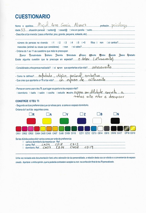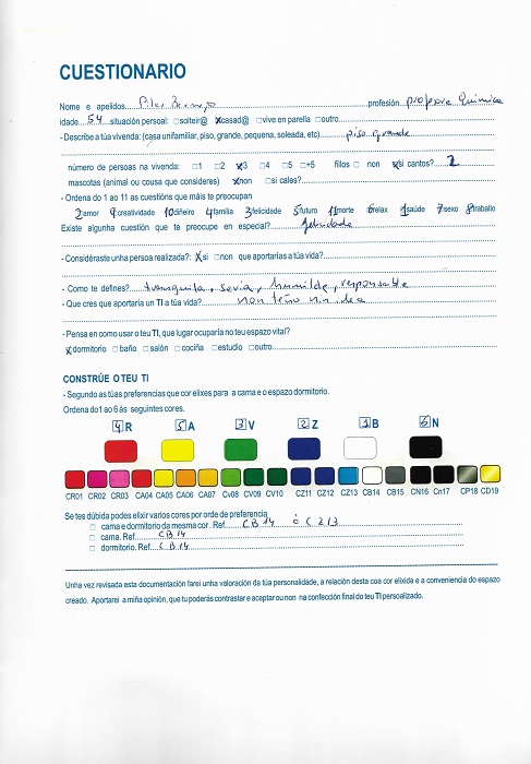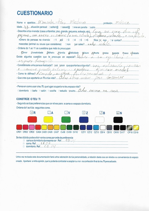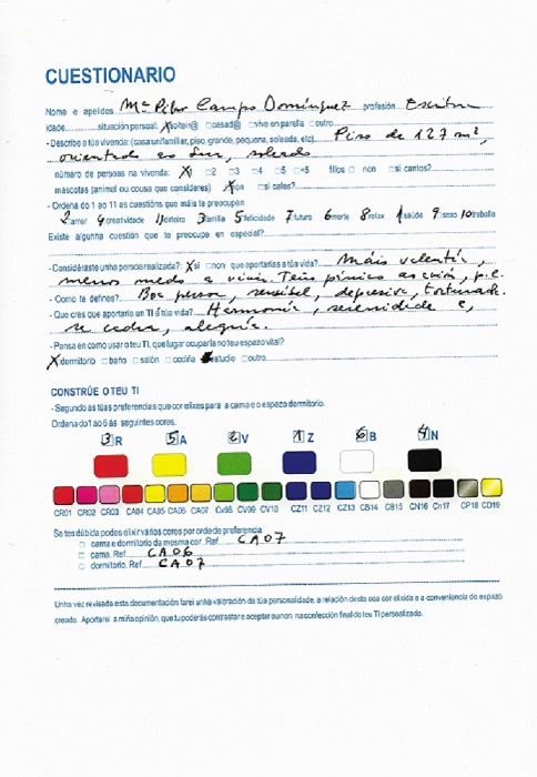 Despois de analizar a descrición dos espazos todos tenden a asemellarse ao seu dormitorio actual, que el define como: O meu dormitorio é o ideal porque é o pretendido no seu deseño.